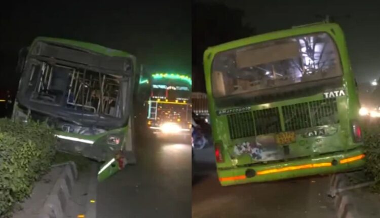 DTC bus hit a person and a police constable of PS Civil Lines and rammed into the divider near Monastery Market, Ring Road.