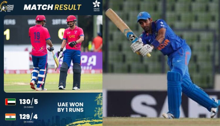 IND vs UAE: హాంకాంగ్ సిక్స్ టోర్నమెంట్లో భారత్, యూఏఈ మధ్య ఉత్తేజకరమైన మ్యాచ్ జరిగింది. అయితే, మ్యాచ్ లో టీమిండియా 1 పరుగు తేడాతో ఓటమిని ఎదుర్కోవలసి వచ్చింది. ఈ మ్యాచ్లో, యూఏఈ 6 ఓవర్లలో 130 పరుగులు చేసింది. దీనికి ప్రతిస్పందనగా టీమిండియా 6 ఓవర్లలో 129 పరుగులు మాత్రమే చేయగలిగింది. దాంతో ఒక పరుగుతో మ్యాచ్ను కోల్పోయింది. యూఏఈపై టీమిండియా కెప్టెన్ రాబిన్ ఉతప్ప 10 బంతుల్లో 3 ఫోర్లు, 5 సిక్సర్లతో 430 స్ట్రైక్ రేట్తో 43 పరుగులతో విద్వంసకర ఇన్నింగ్స్ ఆడాడు. అతనితో పాటు స్టువర్ట్ బిన్నీ కూడా 11 బంతుల్లో 3 ఫోర్లు, 5 సిక్సర్లతో 400 స్ట్రైక్ రేట్తో 44 పరుగులు చేశాడు.