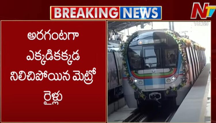 అరగంట పాటు ఎక్కడికక్కడే నిలిచిపోయిన మెట్రో రైళ్లు..